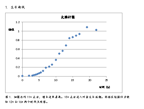 1、 將實驗菌種在5ml NA液體培養基中活化,活化的菌種接種于100ml NA液體培養基中,37℃搖床中培養,接種后立即取0.1ml測量OD值,后連續22h取菌液測其OD值,并繪制實驗菌株的生長曲線。