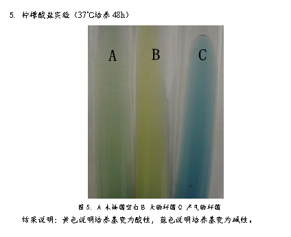 3、 將菌種接種到生理生化檢測培養基中,37℃培養48h。檢測菌種生理生化特性。