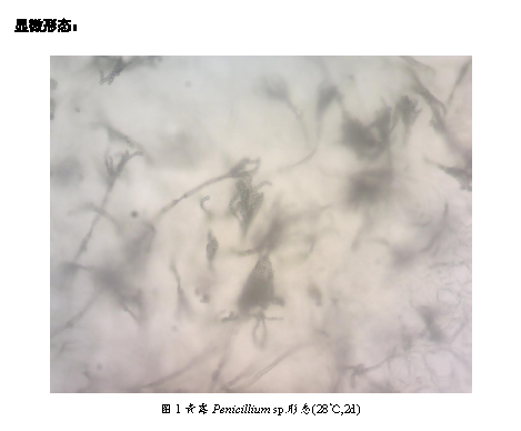 青霉采用玻璃紙法在PDA培養(yǎng)基上接種,28℃培養(yǎng)。第2天即可看到青霉產(chǎn)孢,產(chǎn)孢量較大。青霉菌屬多細(xì)胞,營(yíng)養(yǎng)菌絲體無(wú)色或淡色。菌絲有橫隔,分生孢子梗亦有橫隔,光滑或粗糙。基部無(wú)足細(xì)胞,頂端不形成膨大的頂囊,其分生孢子梗經(jīng)過(guò)多次分枝,產(chǎn)生幾輪對(duì)稱或不對(duì)稱的小梗,形如掃帚,稱為帚狀體。分生孢子球形,生長(zhǎng)時(shí)呈藍(lán)綠色。培養(yǎng)一周后,可看到明顯的孢子脫落。連續(xù)觀察2周,仍然可以觀察到青霉的產(chǎn)孢結(jié)構(gòu),分生孢子易觀察。